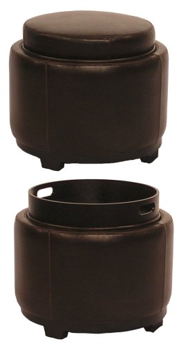 This simple yet stylish ottoman not only looks fashionable but serves dual purpose as well. Use it for storage, as a foot stool or flip over the top and use the wood tray for beverages or books. This ottoman is covered in a durable bi-cast leather allowing for easy cleanup and a consistent look throughout.